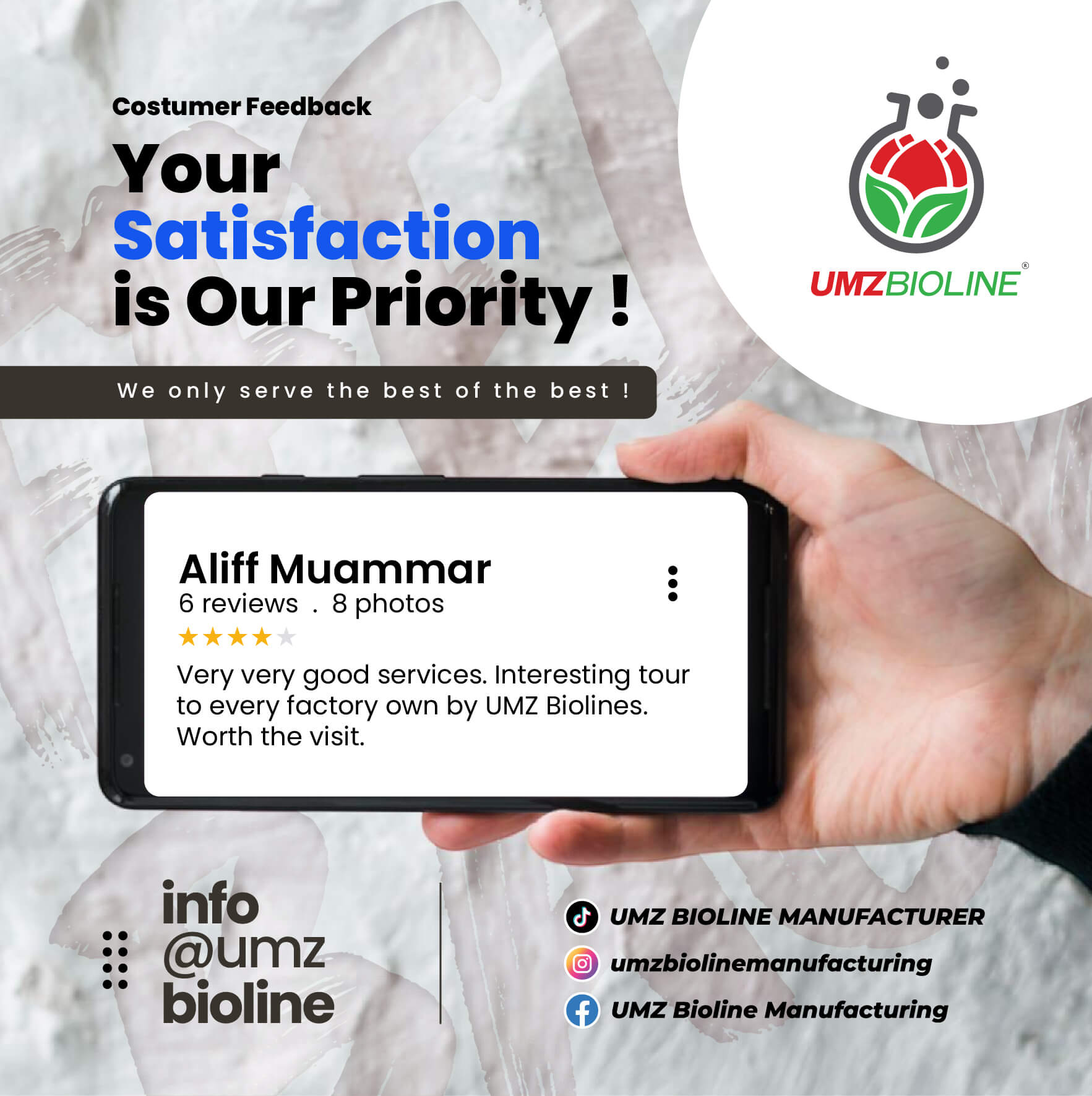 UMZ Bioline Manufacturer is a trusted OEM manufacturer in Malaysia with over 15 years of experience in producing OEM beauty products, health beverages, coffee products and traditional medicine for brands.