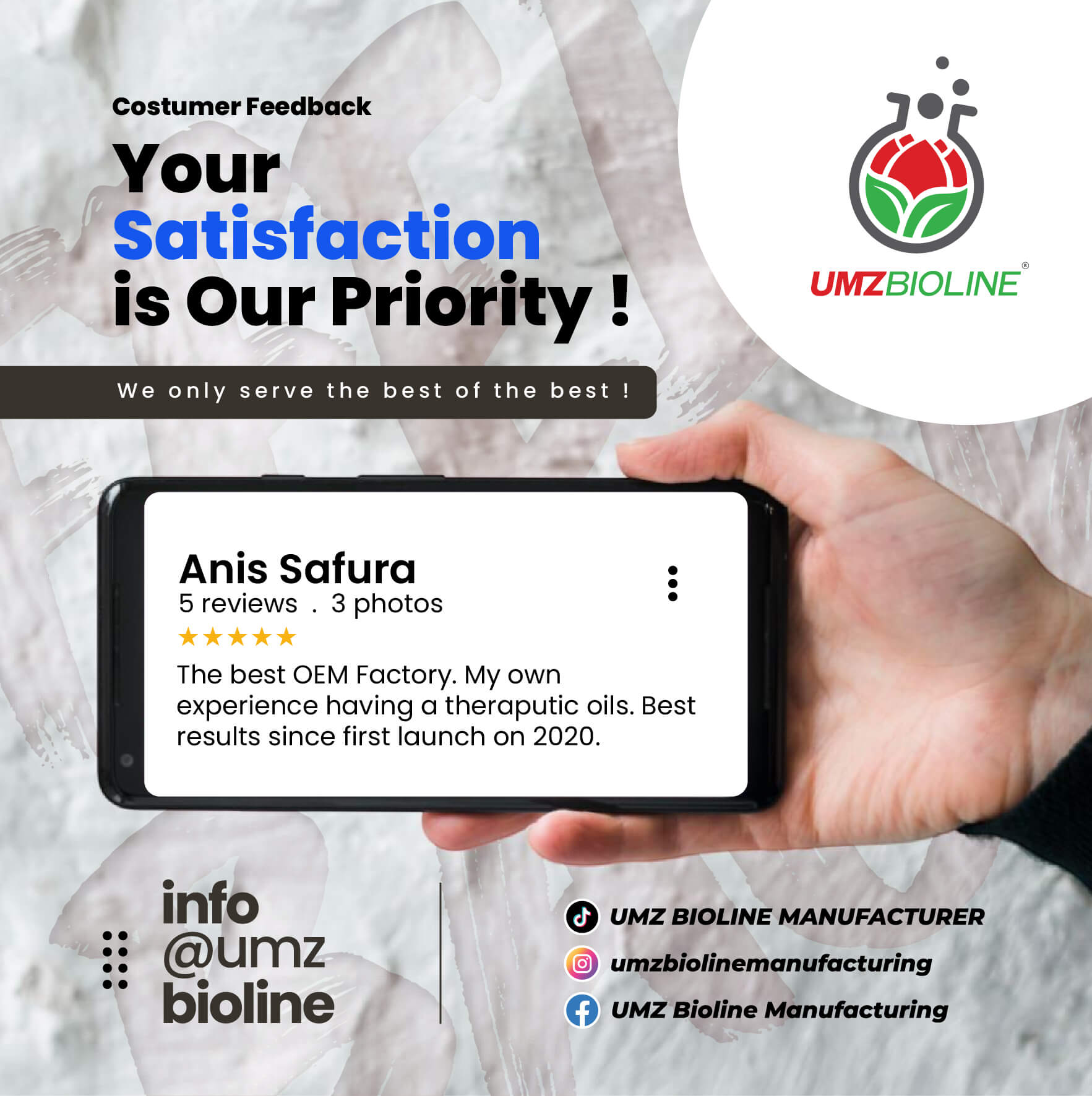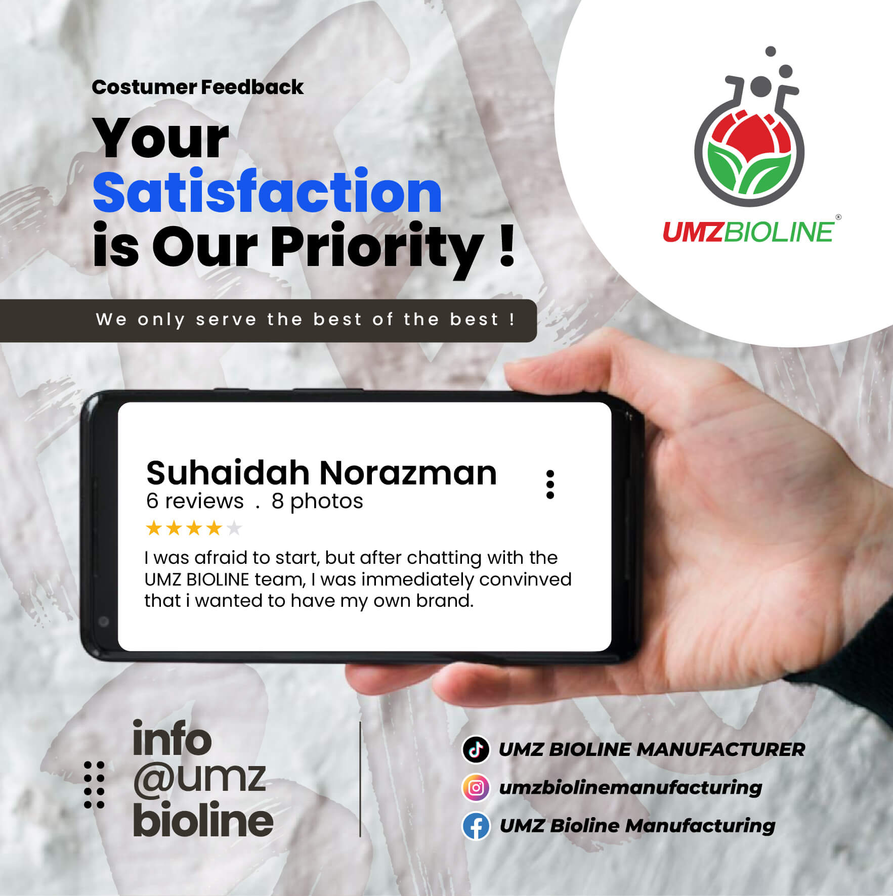 At UMZ Bioline Manufacturer, we make it easy to launch your OEM product in Malaysia with hands on guidance, formula support, and full production services.